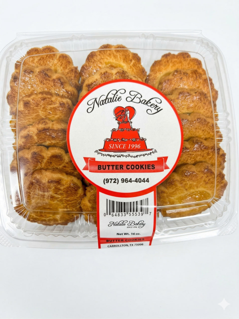 Experience the comforting, nostalgic taste of our Natalie Bakery Classic Butter Cookies. A Carrollton, TX favorite since 1996, these golden-brown treats are the definition of simple perfection. Each cookie is baked to a precise golden hue, offering a delicate, scalloped edge and a signature cross-hatch pattern that provides a satisfying, light crunch.