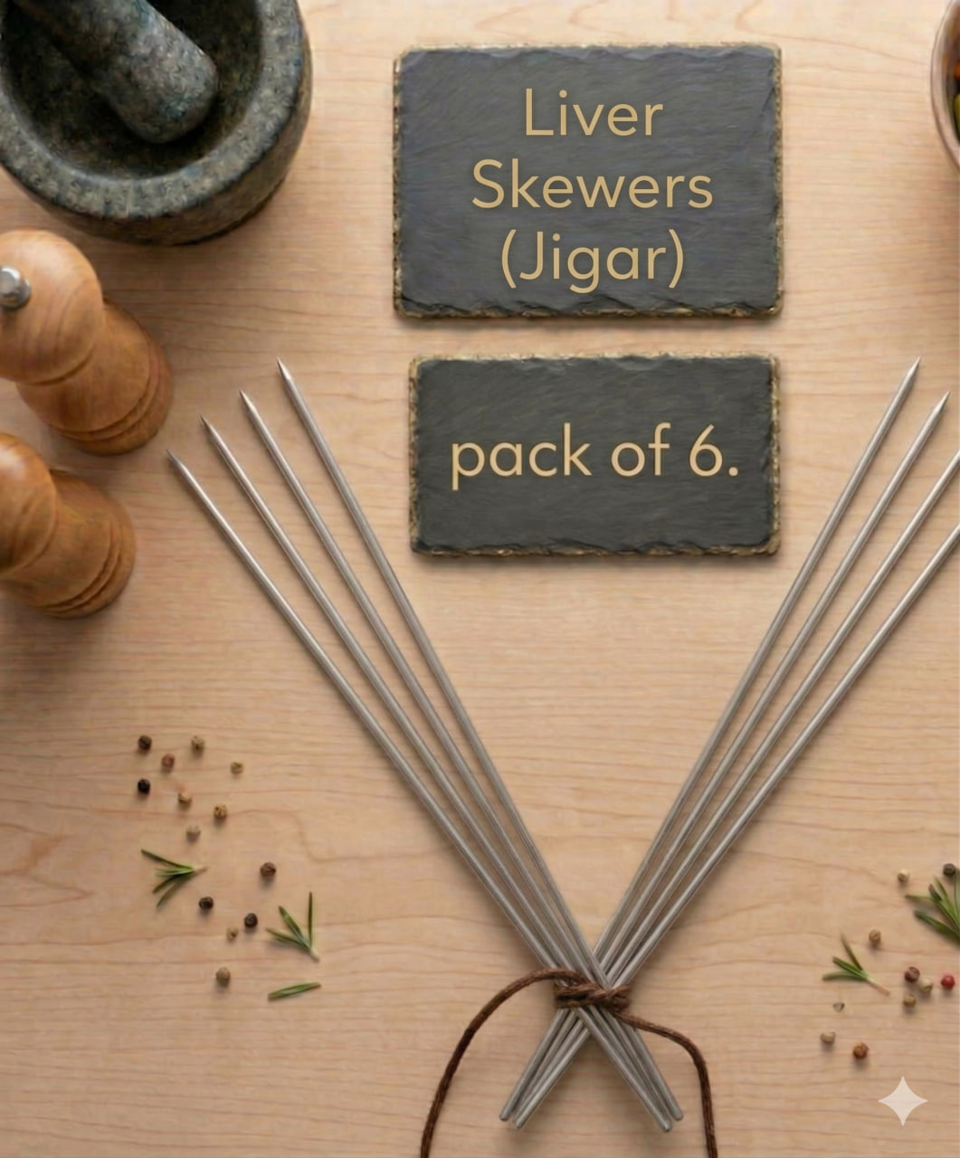 flat metal skewers designed for grilling liver (Jigar) and meats—durable, reusable, and ideal for Mediterranean BBQ.