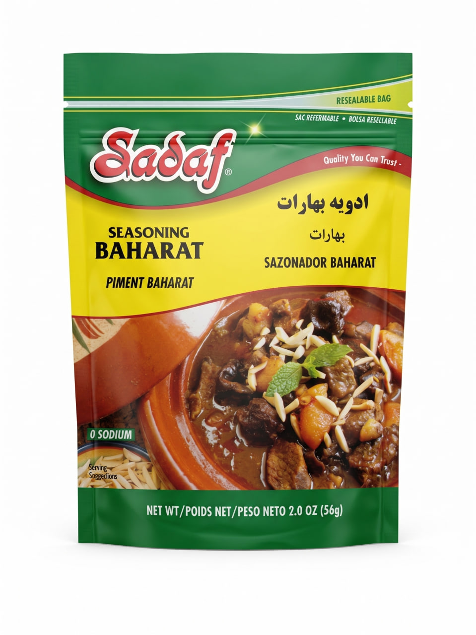 Add rich, aromatic warmth to your favorite recipes with Sadaf Seasoning Baharat. This premium, zero-sodium Middle Eastern spice blend is the perfect all-purpose seasoning for elevating hearty stews, meat marinades, and traditional rice dishes. Packaged in a convenient 2.0 oz resealable bag to lock in authentic flavor and freshness.